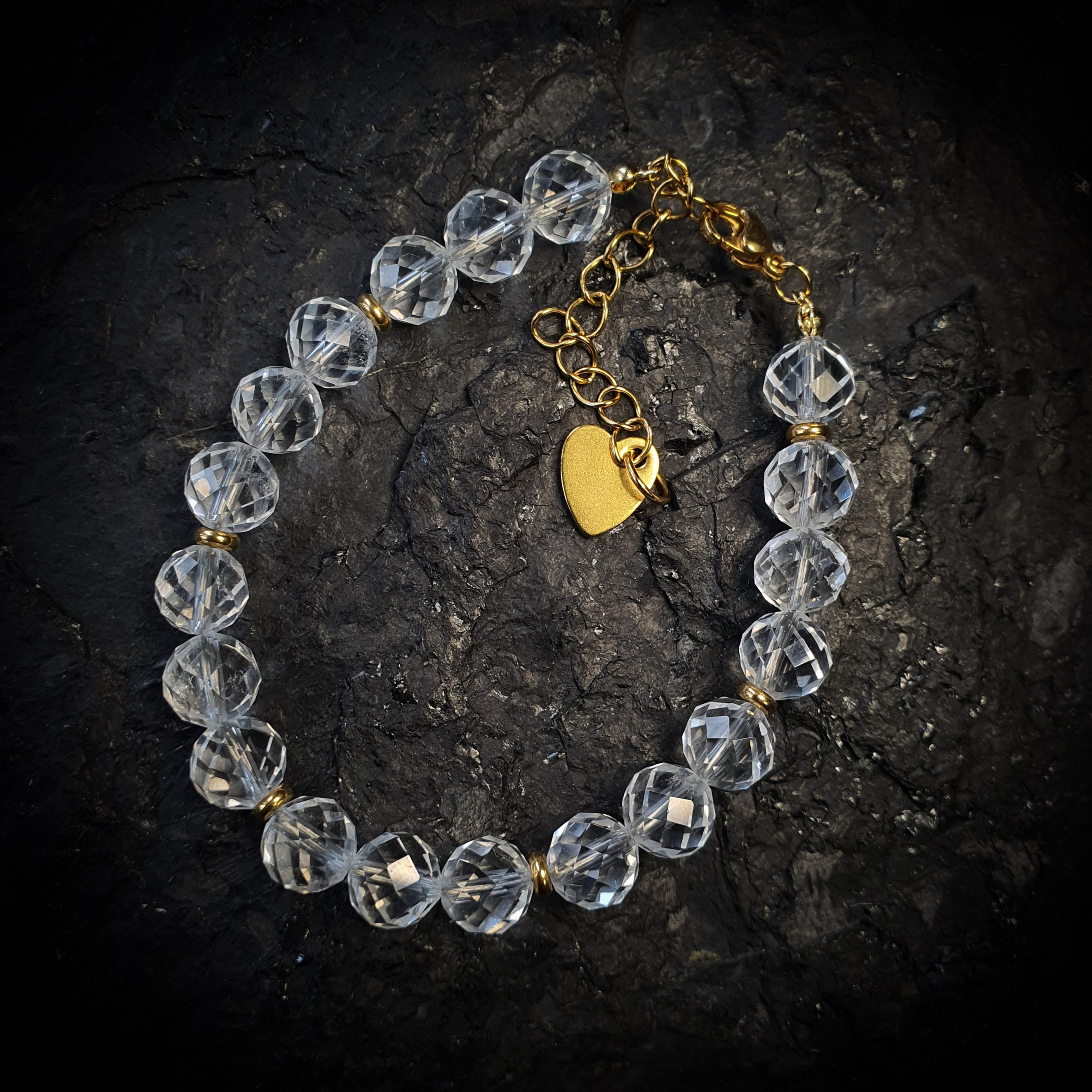 Ta wyjątkowa bransoletka, stworzona z kryształu górskiego, kwarcu różowego i hematytu, to połączenie trzech kamieni, które od wieków znane są ze swoich magicznych właściwości.
