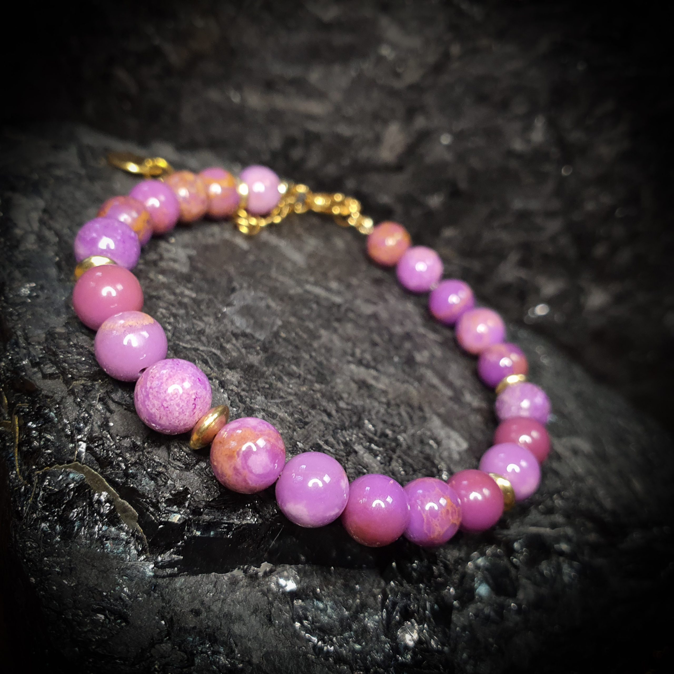 Dodaj odrobinę spokoju do swojego wyglądu dzięki tej pięknej bransoletce z Lepidolitu.